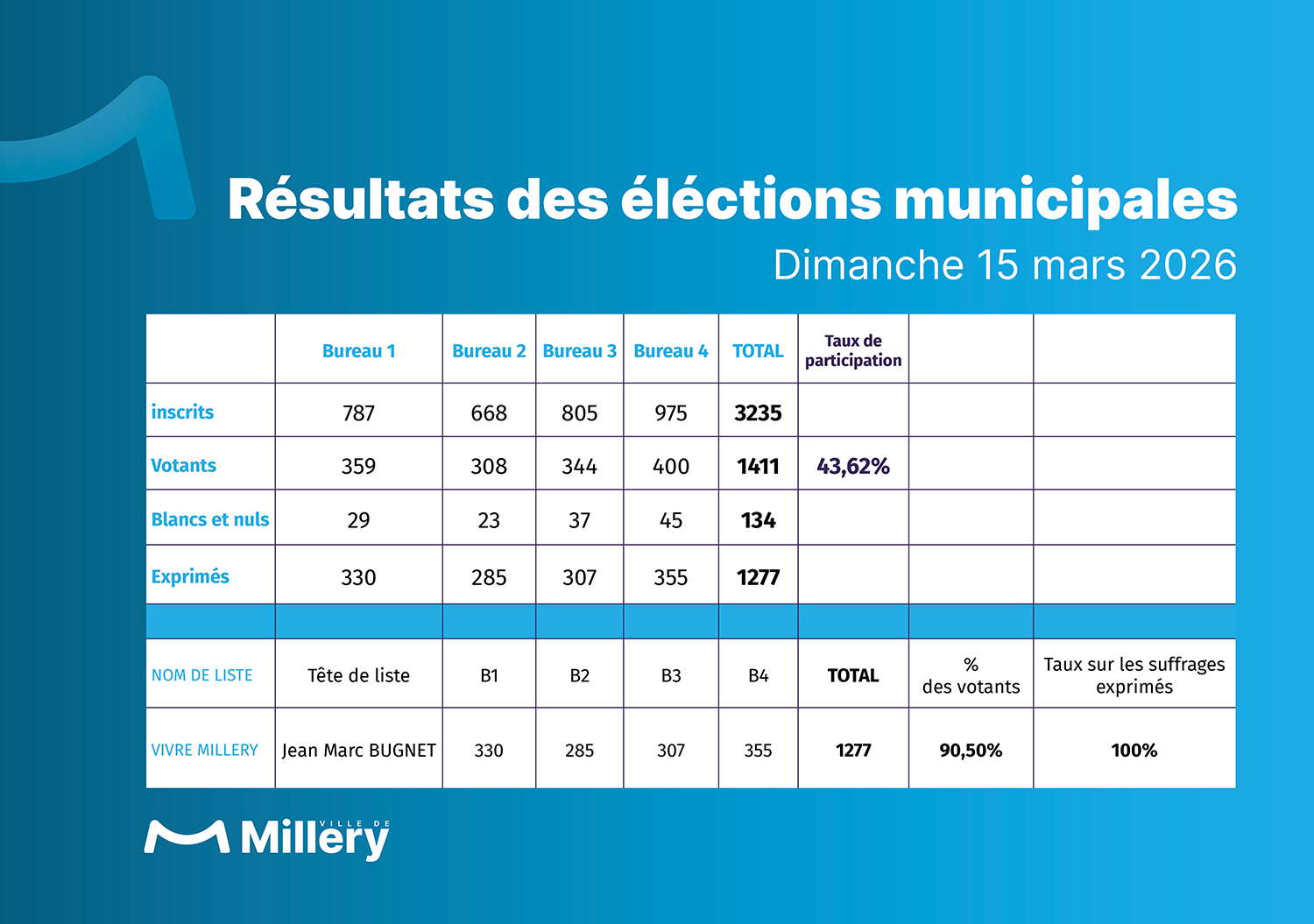 Résultats des élections municipales du 15 mars 2026